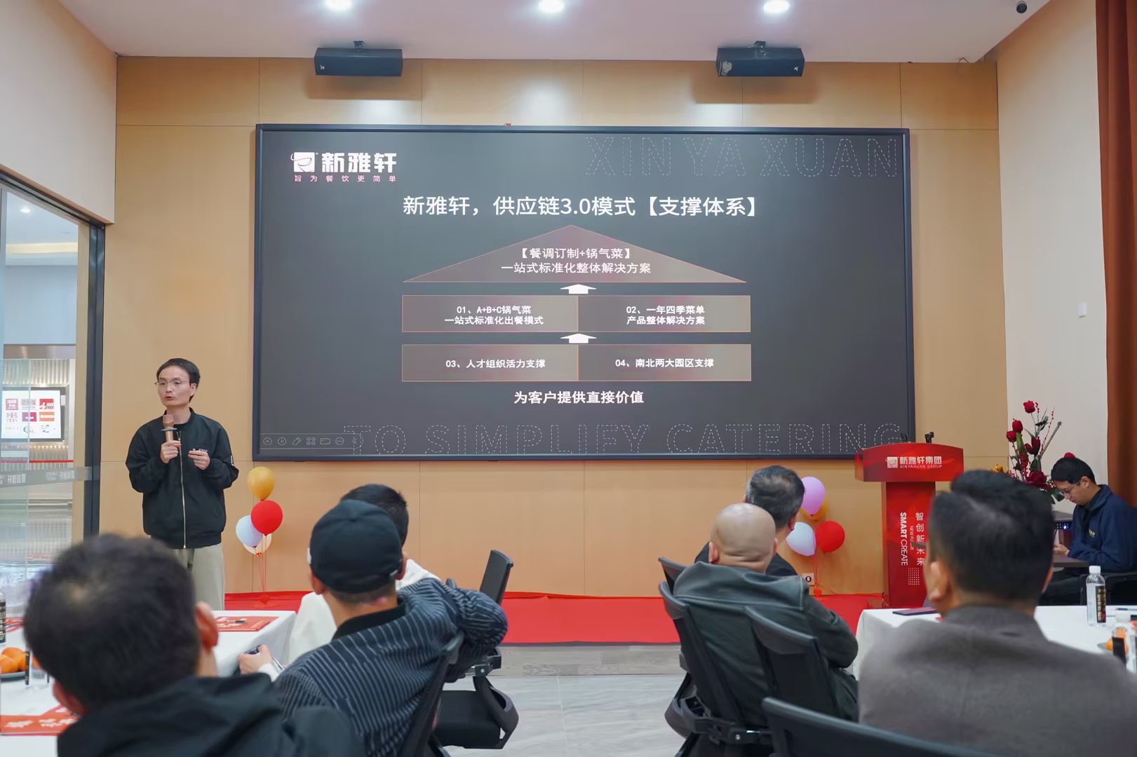 新雅軒張經(jīng)理為到場嘉賓再次詳細(xì)介紹了新雅軒供應(yīng)鏈3.0模式,即“產(chǎn)品整體解決方案”,以強(qiáng)大的產(chǎn)品力為基礎(chǔ),新雅軒創(chuàng)新打造了30+產(chǎn)品系列,沉淀4000+味型配方,同時(shí)為客戶提供“A+B+C”一站式標(biāo)準(zhǔn)化出餐模式、“一年四季菜單”方案服務(wù),以此提供差異化的直接價(jià)值,包括消費(fèi)者洞察、尋味尋根、產(chǎn)品創(chuàng)研、菜品研發(fā)、毛利控制、出品創(chuàng)意等,助力餐飲品牌提升自身競爭力。